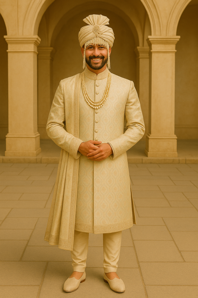 | Wedding Day | Traditional sherwani with dupatta & safa |