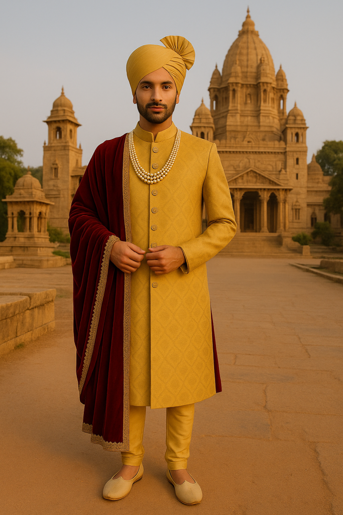 - ✅ Wide Variety: Traditional, Indo-western, Jodhpuri, Achkan, and designer groom sherwanis.