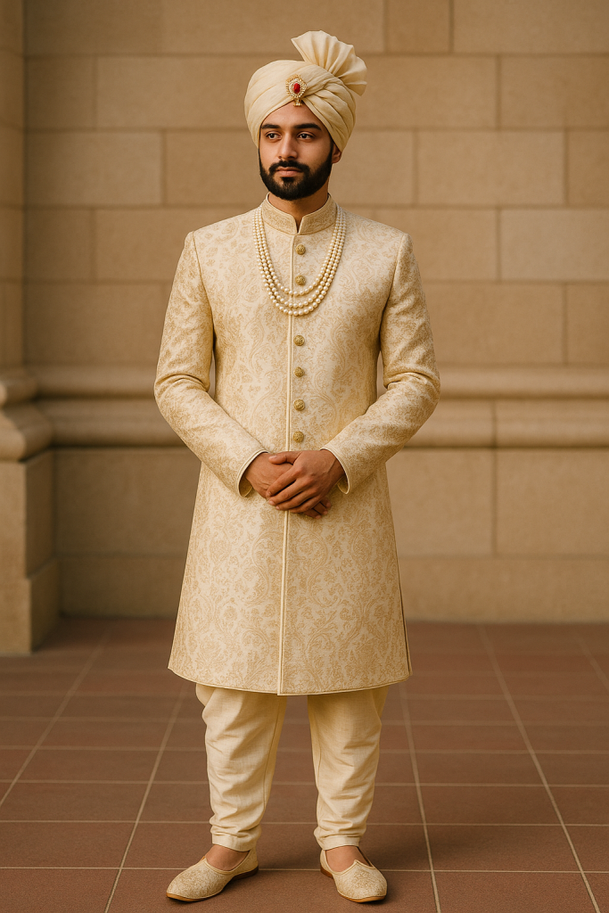 - Trial Day: Try everything on together—sherwani, footwear, accessories—to avoid surprises on your big day.