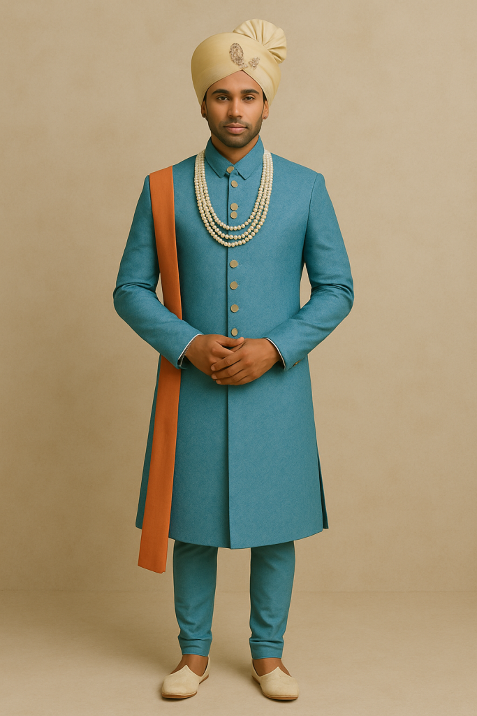 Gone are the days when grooms would simply throw on a plain kurta. The modern Indian groom knows the value of fashion, culture, and comfort. A groom sherwani isn’t just about wearing something traditional—it’s about honoring your roots while expressing your personality.