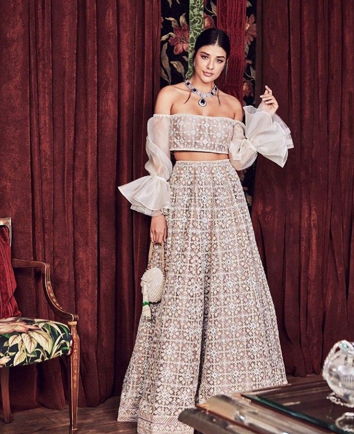 👚 2. ऑफ-शोल्डर टॉप + पलाज़ो