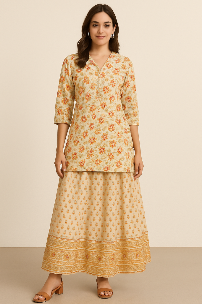 🧵 4. कुर्ता + स्कर्ट सेट